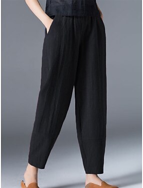 Dámské Imitace bavlny a lnu Kalhoty Letní kalhoty Volné kalhoty prázdniny Vinobraní Základní Po kotníky Vysoký pas Bez vzoru Kapsy Elastický pas Pohodlné Venkovní Elastické Denní Plážové Dovolená