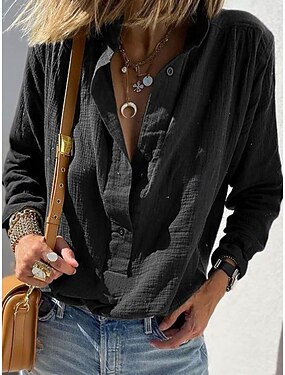 Dámské Košile Tlačítko nahoru Halenka Imitace bavlny a lnu Knoflíky Bez vzoru Základní Moderní Na běžné nošení Dlouhý rukáv Košilový límec Dlouhé topy Denní Dovolená Jdeme ven Vodní modrá Černá Bíl