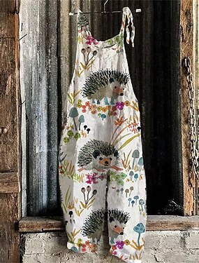 Dámský overal s květinovým potiskem, bez rukávů, výstřih do U, imitace bavlny, len, denní street, regular střih, černá, bílá, žlutá, léto
