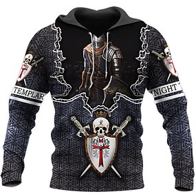 Pánské Grafika Templářští rytíři Haç Kapuce Kapucky Mikina Designové Na běžné nošení Velký a vysoký Sportovní Dlouhý rukáv Kapuce Práce Denní Víkend Streetwear Bílá+tmavě šedá světle šedá a čern