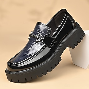 Pánské černé mokasíny z lakované kůže s robustní podrážkou, módní společenské boty pro muže, ideální do kanceláře, na večírky, k elegantně ležérnímu oblečení a formálním příležitostem.