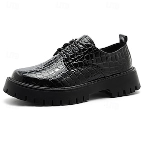 Pánské elegantní boty z lakované imitace kůže s reliéfním vzorem - černé formální obchodní šněrovací oxfordky na svatby, večírky a akce
