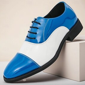 Pánské modrobílé lakované oxfordské boty se šněrováním, společenské boty, módní obuv na svatby, večírky, bankety, divadelní vystoupení a večerní akce.