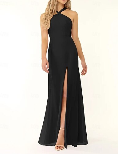 Šaty pro družičky v podobě mermaid trumpetu s halter výstřihem bez rukávů elegantní podlahové délky šifon s rozparkem