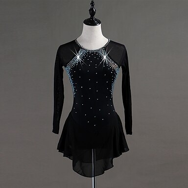 Šaty na bruslení Dámské Dívčí Buz Pateni Šaty Černá Slátanina Asymetrický lem Síťka Spandex Vysoká pružnost Trénink Soutěž Bruslařské oblečení Klasický Křišťál a napodobenina Dlouhý rukáv Bruslen