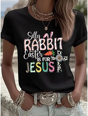 Velikonoce Dámské Tričko Tisk Květinový Grafika Zvíře stylové Klasické Na běžné nošení Krátký rukáv Tričkový Běžné topy Denní Vodní modrá Černá Bílá Světlá růžová Léto Jaro
