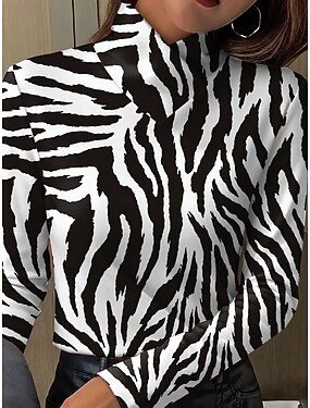 Dámské Tričko Tisk Grafika Geometrický Zebra Elegantní Vinobraní stylové Dlouhý rukáv Rolák Stojáček Běžné topy Denní Černá Trávová zelená Béžová Jaro Podzim Zima
