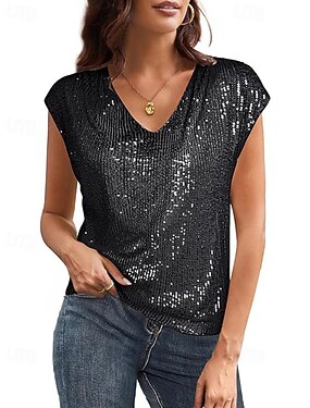 Dámské Tričko Tričko Top Flitry Proužky Módní Krátký rukáv Do V Běžné topy Párty večerní šaty Párty oblečení Vodní modrá Stříbrná Černá Bílá Rubínově červená Jaro Podzim