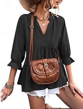 Dámské Tričko Tlačítko Přední Rolovaná manžeta Elegantní stylové Na běžné nošení Krátký rukáv Netopýří rukávy Do V Dlouhé topy Denní Jdeme ven Fialová Modrá Černá Bílá Světlá růžová Fialová Léto Jaro