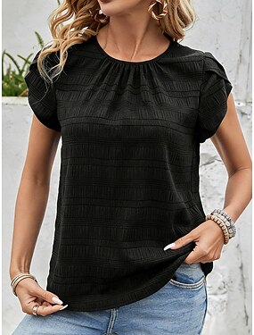 Dámské Tričko Trička Záhyby Pevná barva Elegantní Vinobraní stylové Krátký rukáv Nabíraný krk Běžné topy Denní Jdeme ven Vodní modrá Černá Světle zelená Světlá růžová Šedá Léto Jaro
