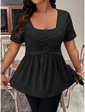Dámské Tričko Nabírané šaty Slátanina Pevná barva Módní Na běžné nošení Krátký rukáv Hranatý Dlouhé topy Denní Jdeme ven Víkend Tmavěhnědá Černá Světle zelená Fialová Fialová Léto Jaro
