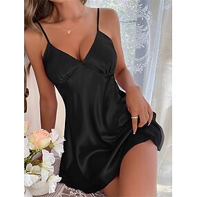 Dámské Noční košile Na běžné nošení Měkké Satén Čistá barva Krajka Volná záda Denní Domů Postel Bez rukávů Popruhy Černá Světlá růžová Rubínově červená Námořnická modř Léto Volný