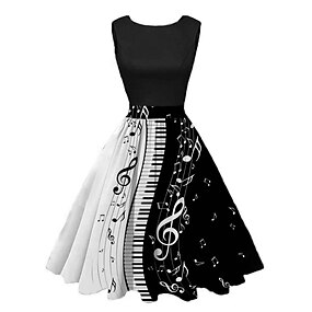 dámské retro 50. léta vintage čajové šaty midi šaty denní dovolená nařasený potisk poznámka posádka krk bez rukávů slim léto jaro 2023 černé víno s m l xl