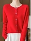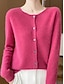 Dámské Svetr Kardigan Na běžné nošení Měkké Čistá barva Rýhovaný Tričkový Knoflíky Pletený Dlouhý rukáv Běžné topy Plést Venkovní Denní Víkend Bílá Rubínově červená Podzim Zima