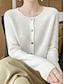 Dámské Svetr Na běžné nošení Měkké Čistá barva Kabel Tričkový Knoflíky Pletený Dlouhý rukáv Běžné topy Plést Venkovní Denní Víkend Černá Bílá Podzim Zima