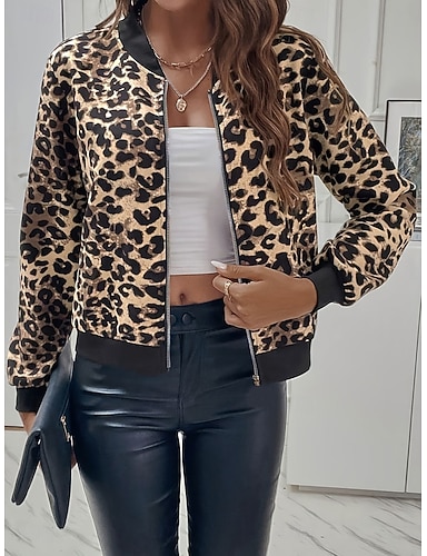 Dámské Neformální bunda Pohodlné Zip Tisk Vinobraní Módní Leopard Škola Venkovní Dovolená Domů Krátké baseballový obojek Běžný Dlouhý rukáv Svrchní oděvy Levhartí potisk Jaro Podzim