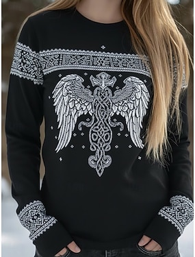 Dámské Tričko Tisk Grafika Geometrický Geometrie Vinobraní stylové Klasické Dlouhý rukáv Tričkový Běžné topy Denní Víkend Černá Podzim Zima