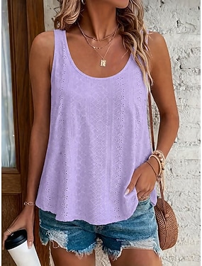 Dámské Košile Texturovaná halenka Očko nahoře Tričko s motivem Pointelle Slátanina Bez vzoru Vinobraní stylové Klasické Bez rukávů Do U Běžné topy Ležérní Denní Plážové Žlutá Světlá růžová Fialov