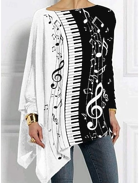 Dámské Tričko Tisk Asymetrický Grafika Geometrický Abstraktní Vinobraní stylové Na běžné nošení Dlouhý rukáv Tričkový Dlouhé topy Denní Černá Bílá Žlutá Rubínově červená Jaro Podzim