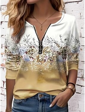 Ženské tričko s čtvrtinovým zipem dlouhým rukávem každodenní květinové v krku pravidelné topy denní bílá červená námořnická modrá modrá prašně modrá léto
