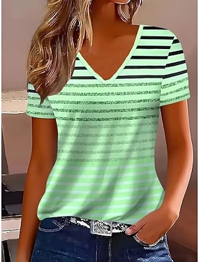 Dámské Tričko Tisk Grafika Geometrický Proužky Vinobraní Na běžné nošení Krátký rukáv Do V Běžné topy Denní Víkend Oblečení na dovolenou Vodní modrá Světlá růžová Fialová Trávová zelená Léto Jaro