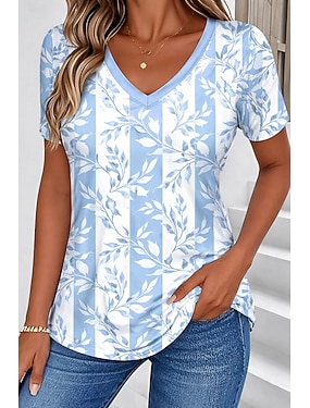 Dámské Tričko Tisk Květinový Grafika Rostliny stylové Klasické Na běžné nošení Krátký rukáv Do V Běžné topy Denní Vodní modrá Světlá růžová Trávová zelená Léto Jaro