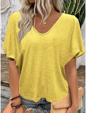 Dámské Tričko Tričko Top Bez vzoru Módní Klasické Na běžné nošení Krátký rukáv Do V Běžné topy Denní Jdeme ven Víkend Černá Bílá Fialová Námořnická modř Hnědá Léto Jaro