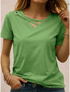 Dámské Tričko Tričko Top Bez vzoru Módní stylové Základní Krátký rukáv Do V Běžné topy Denní Jdeme ven Víkend Černá Bílá Fialová Námořnická modř Trávová zelená Léto Jaro