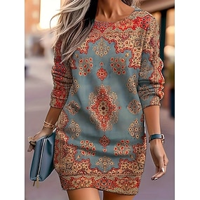 Dámské Mini šaty Boho šaty Šaty s potiskem Módní Moderní Denní Dovolená Rande Běžný Květinový Dlouhý rukáv Tričkový Rubínově červená Jaro Podzim