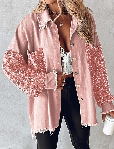 Dámské Neformální bunda Pohodlné Prodyšné Kapsy Knoflíky Na běžné nošení Barevné bloky Dovolená ulice Ležérní Denní nošení Jednořadé Krátké Přehnutý Volný Dlouhý rukáv Svrchní oděvy Světlá růžová