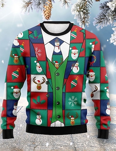 ošklivý vánoční svetr pánské vtipné svetry santa claus potisk sněhových vloček pletený svetr svetr úplet novoroční svetr denní nošení dovolená s dlouhým rukávem posádka krky černý podzim &