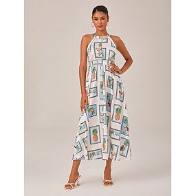 Dámské Volnočasové šaty Áčkové šaty Elegantní šaty Maxi šaty Bílá Bez rukávů Ovoce Květina / Rostliny Krajka Tisk Vázání vzadu Léto Krk ohlávky prázdniny Denní XS S M