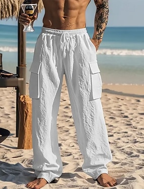 Pánské Plátěné kalhoty Kalhoty Letní kalhoty Volné kalhoty Plážové kalhoty Elastický pas Šňůrky Straight-Leg Bez vzoru Pohodlné Prodyšné Plná délka Venkovní Dovolená Plážové prázdniny Módní Bíl
