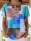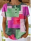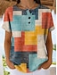 Dámské Vaflové T Košile Barevný Blok Tisk Knoflíkový Přední Grafika Geometrická Vintage Stylový Klasický Krátký Rukáv Crew Neck Běžné Halenky Každodenní Růžová Oranžová Béžová Letní Jaro