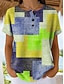 Dámské Halenky s Vaflovým Texturem T Košile Barevný Blok Tisk Grafika Geometrická Stylový Klasický Krátký Rukáv Crew Neck Kulatý Výstřih Henley Běžné Halenky Každodenní Sporty Světle Hnědá Duhová