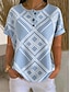Dámské Halenky s Vaflovým Texturem T Košile Barevný Blok Tisk Grafika Kmenový Stylový Klasický Krátký Rukáv Henley Běžné Halenky Každodenní Sporty Bílá-Modrá Růžová Letní Jaro