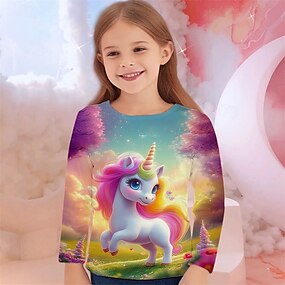 Dívčí 3D Grafika Zvíře Jednorožec Tričko Košilky Dlouhý rukáv Jaro Podzim Módní Základní Děti 4-12 let Tričkový Venkovní Ležérní Denní Běžný