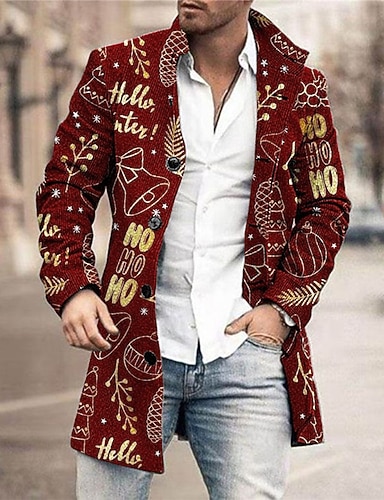 Vánoce Pánské Písmeno Zvonové Zimní kabát Kabát Zahřívací Prodyšné Pohodlné Obchodní Kotníčkové Vánoce Práce Noste do práce Kapsy Tisk Podzim zima Přehnutý Dlouhý rukáv Černá Fialová Vodní modrá