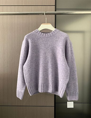 Dámské Svetr Na běžné nošení Měkké Proužky Rýhovaný Úzký výstřih Pletený Dlouhý rukáv Běžné topy Plést Venkovní Denní Víkend Vodní modrá Fialová Podzim Zima