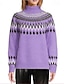 Dámské Vánoční svetr Fair Isle svetr Svetr Svetr Fair Isle Šik ven Na běžné nošení Květinový Mock Neck Pletený Tisk Dlouhý rukáv Běžné topy Plést Denní Jdeme ven Víkend Žlutá Světlá růžová Podzim Zima