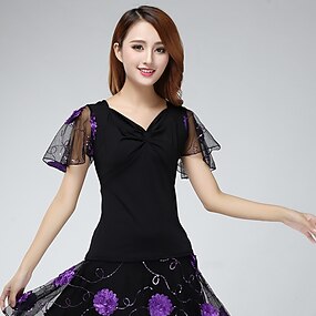 Latinské tance Standardní tance Vrchní deska Volány Barevně dělené Flitry Dámské Výkon Trénink Krátký rukáv Spandex