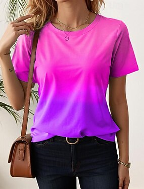 Dámské tričko Neformální Ombre Kulatý límec Žlutá Červená Gradient Krátký rukáv Měkké Stretchy Denní Letní Základní topy