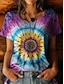 Dámské Tričko Tisk Květinový Grafika Rostliny Čechy Vinobraní stylové Krátký rukáv Do V Běžné topy Denní Vodní modrá Fialová Oranžová Trávová zelená Léto Jaro