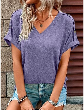 Dámské Tričko Tričko Top Knoflíky Bez vzoru Módní stylové Klasické Krátký rukáv Do V Běžné topy Denní Jdeme ven Víkend Vodní modrá Černá Fialová Námořnická modř Fialová Léto Jaro
