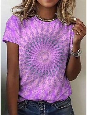 Dámské Tričko Tisk Tónované Grafika Abstraktní Čechy Havajské stylové Krátký rukáv Tričkový Běžné topy Ležérní Denní Vodní modrá Světlá růžová Fialová Léto Jaro