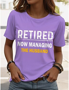 Womenské tričko s potiskem 'Důchodce' Grafika Písmeno Vintage Stylové Klasické Krátký rukáv Kulatý výstřih Běžné topy Denní víkendový potisk Černá Bílá Růžová Modrá Fialová Léto