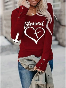 dámské valentýnské vtipné tričko móda srdce dopis pravidelné topy dlouhý rukáv kulatý výstřih tisk regular fit valentýn víkend černá bílá růžová víno jaro & podzim