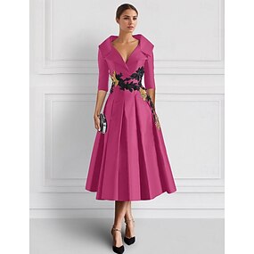 Vyšívané A-linie koktejlové šaty Tuxedo Šaty pro matku nevěsty Elegantní Formální Délka nad kotníkem 3/4 délka rukávu Košile Límec Kapsa Satén s aplikacemi
