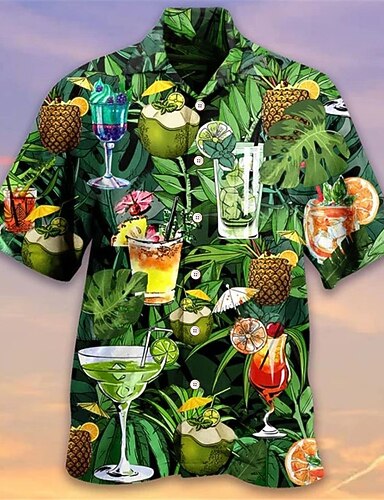 Pánské Ananas Košile Havajská košile Aloha košile Krátký rukáv Košile Přehnutý prázdniny Havajské Venkovní Dovolená Havajské Modrá Fialová Fuchsiová S M L