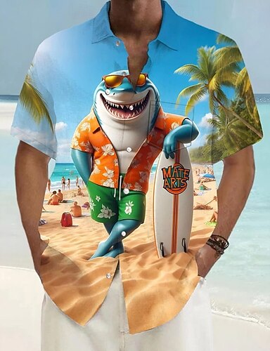 Pánské Žralok Kokosový strom Legrační Košile Havajská košile Košile na knoflíky Krátký rukáv Havajské Dovolená Oblečení na pláž Léto Jaro Přehnutý 3D tisk košile s límečkem Jedna přední kapsa Vodn